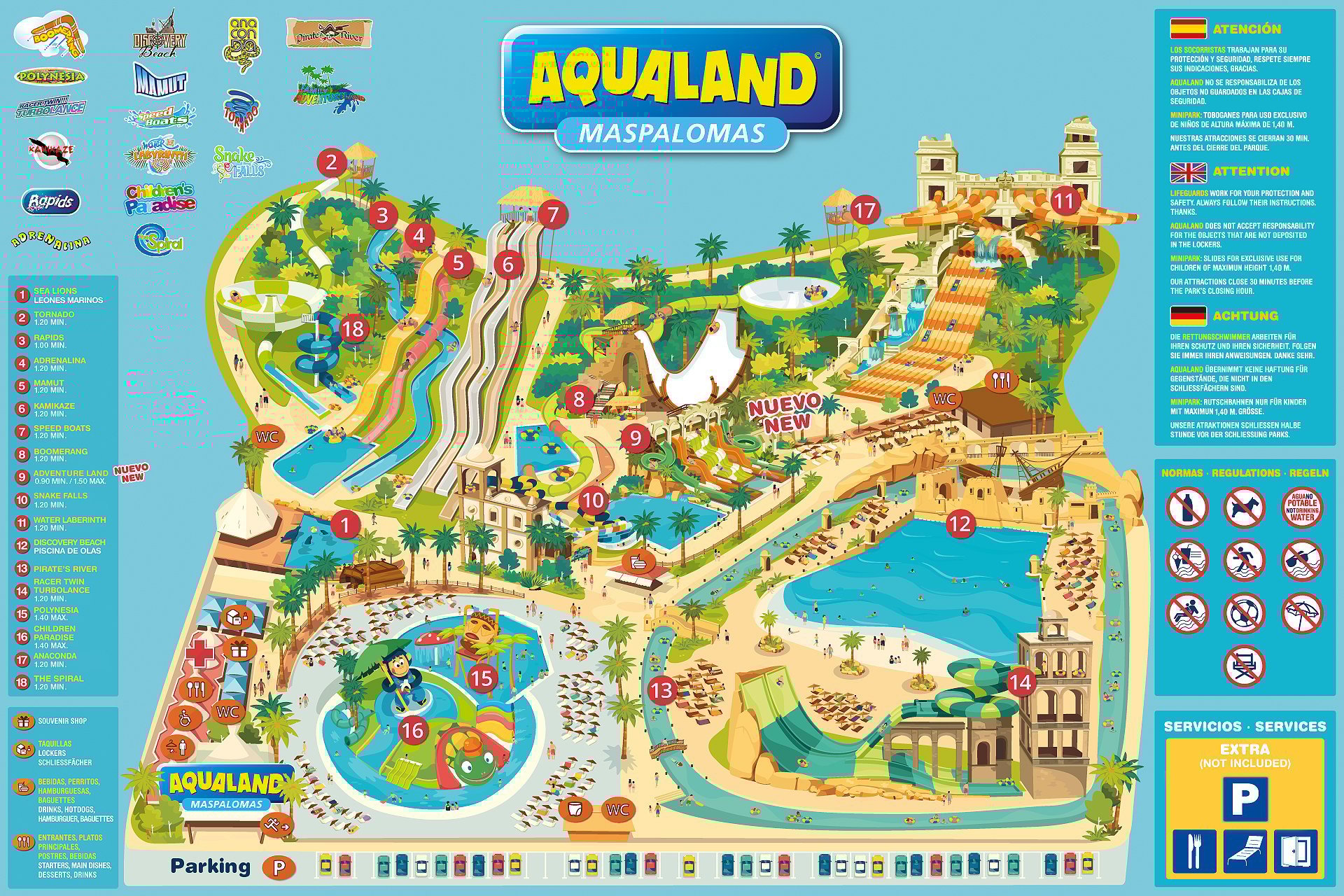40 tobogans i atraccions d'aigua, un dels parcs aquàtics més grans del món,.